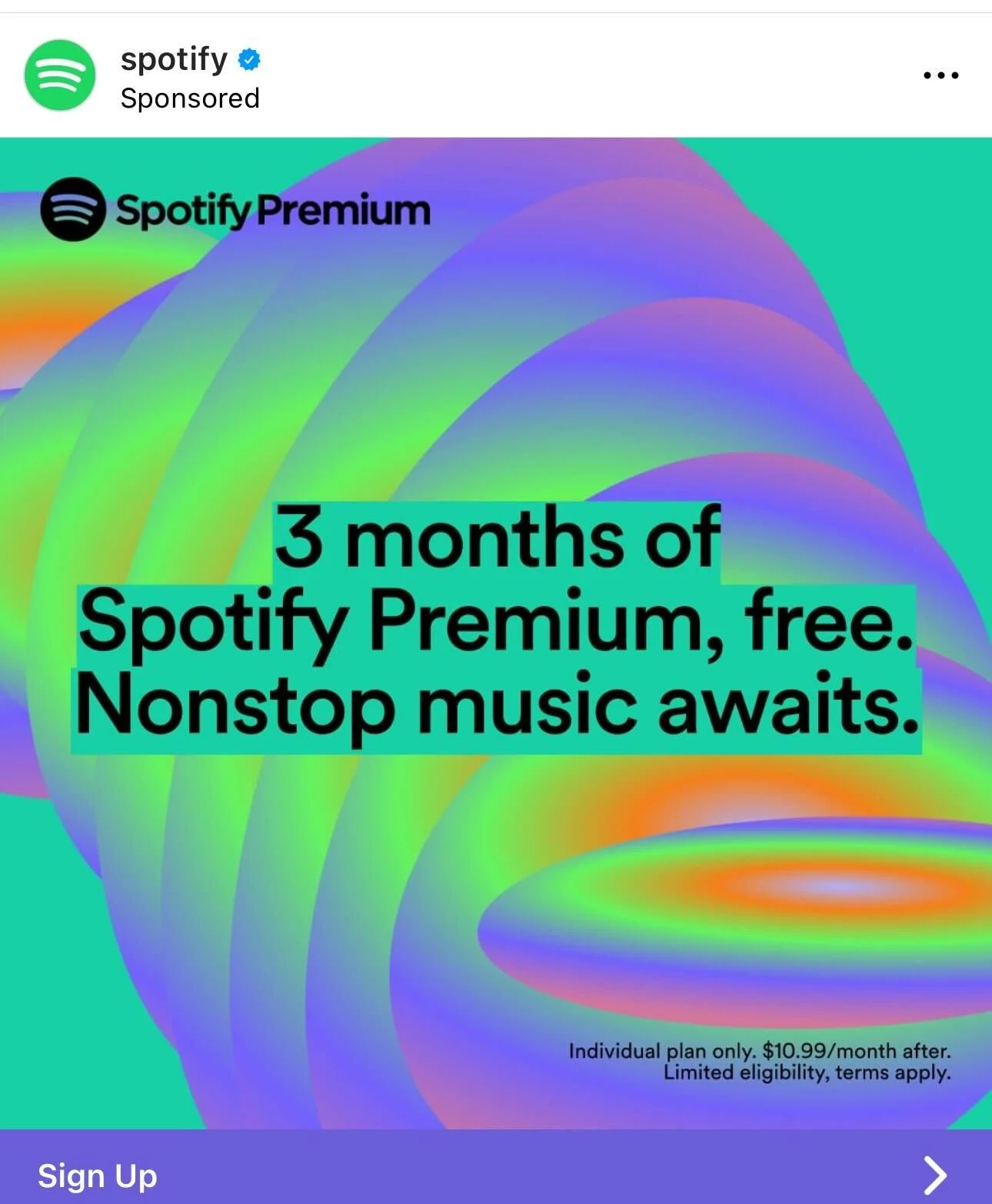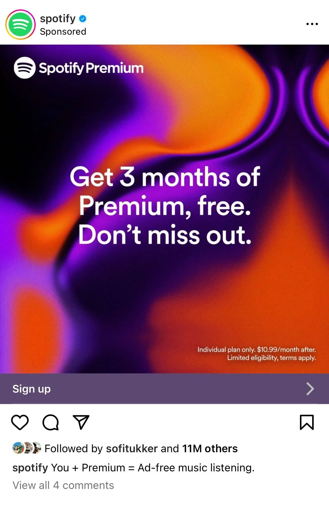 Spotify Premium Instagram ads for bi-annual Premium subscriber campaign (2023). Campaign results: